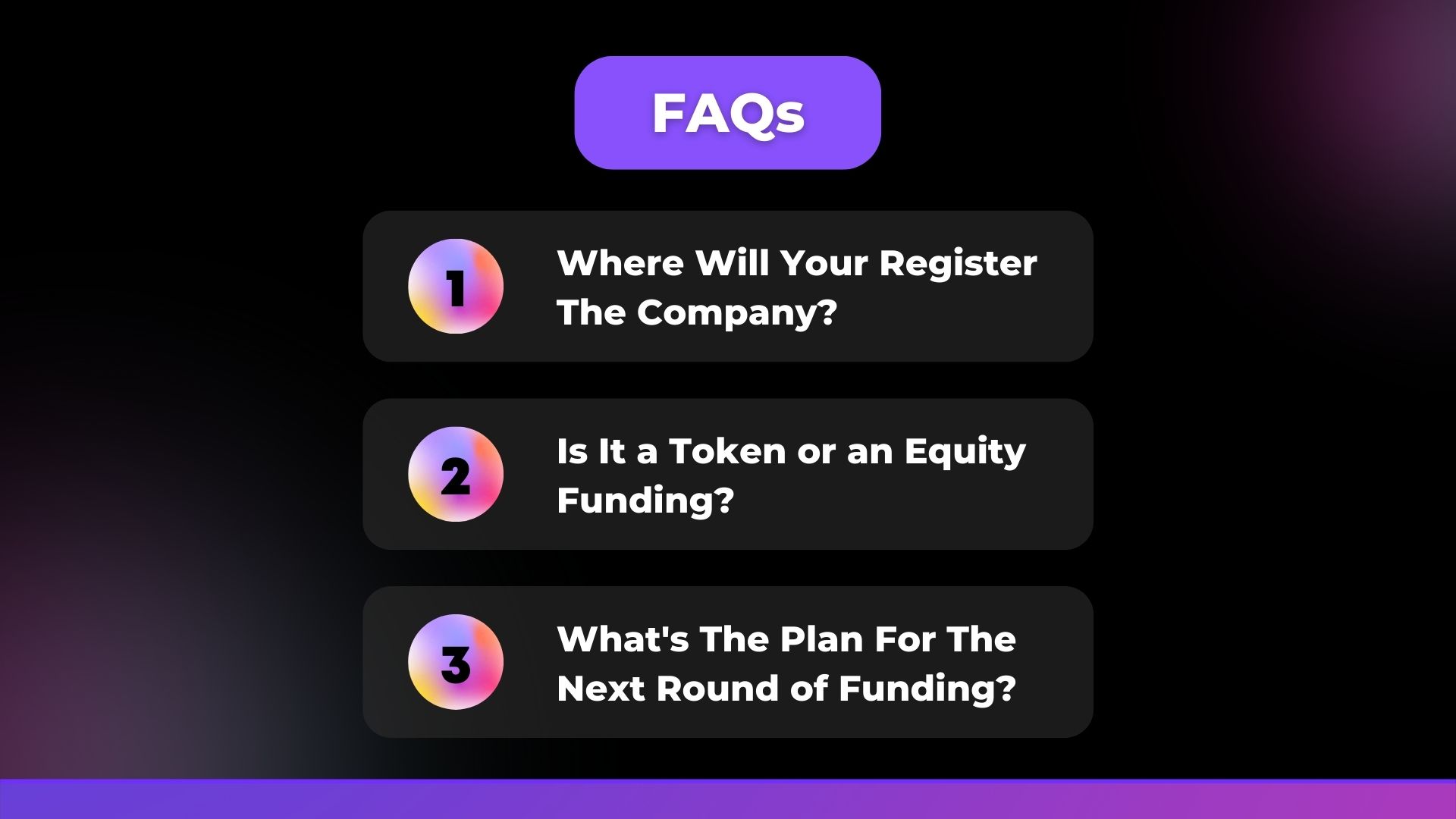 We’ve listed down the Top 3 most asked questions during a pitch.